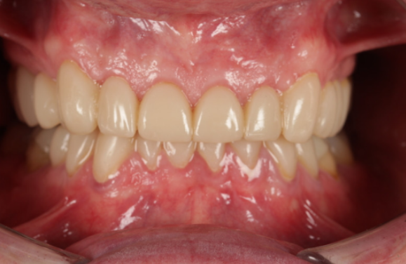 患者對改善后的外觀和舒適度立即表示滿意。術(shù)后兩周、一個月、兩個月和三個月的隨訪評估證實,他已很好地適應(yīng)了恢復(fù)后的垂直咬合關(guān)系和新的修復(fù)體。通過保留牙釉質(zhì)并最大限度地減少牙體磨除,這種方法降低了牙髓并發(fā)癥(牙神經(jīng)炎癥或刺激)的風(fēng)險,同時優(yōu)化了患者的舒適度和長期口腔健康。